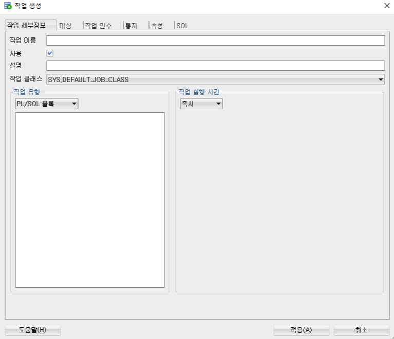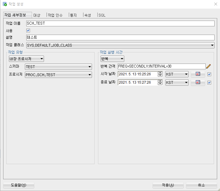 - 작업이름 : 어떤 작업을 위한 스케줄러인지 알 수 있도록 지어주는게 좋고 보통 SCH_로 시작.